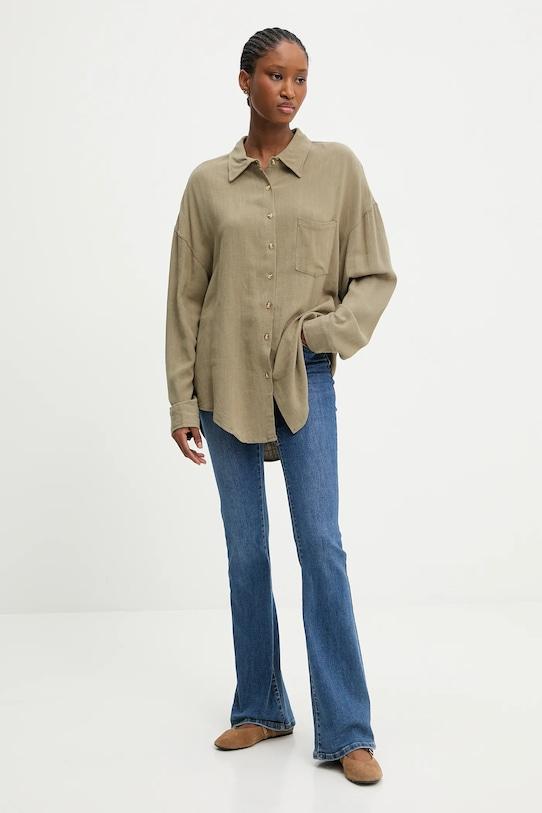 Эта рубашка из коллекции Answear.LAB выполнена из тонкой, неэластичной ткани. Эта модель выполнена из исключительно комфортного и высококачественного материала. - Свободный крой, обеспечивающий полную свободу движений. - Удобная застежка на кнопки позволяет легко надевать и снимать. - Модель с мягким воротником. - Крой рукава со спущенной линией плеча не ограничивает подвижность. - Длинный рукав. - Рукава с манжетами на пуговицах. - Накладной карман на груди. - Длина рукава (от воротника): 76 см. - Длина: 71 см. - Ширина под мышками: 60 см. - Размеры указаны для размера: S.