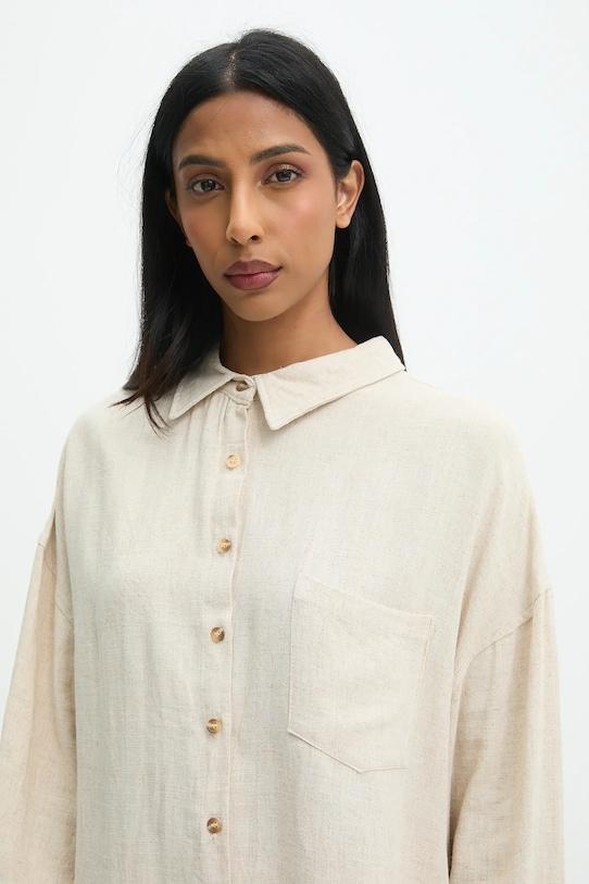 Эта рубашка из коллекции Answear.LAB выполнена из тонкой, неэластичной ткани. Эта модель выполнена из исключительно комфортного и высококачественного материала. - Свободный крой, обеспечивающий полную свободу движений. - Удобная застежка на кнопки позволяет легко надевать и снимать. - Модель с мягким воротником. - Крой рукава со спущенной линией плеча не ограничивает подвижность. - Длинный рукав. - Рукава с манжетами на пуговицах. - Накладной карман на груди. - Длина рукава (от воротника): 76 см. - Длина: 71 см. - Ширина под мышками: 60 см. - Размеры указаны для размера: S.