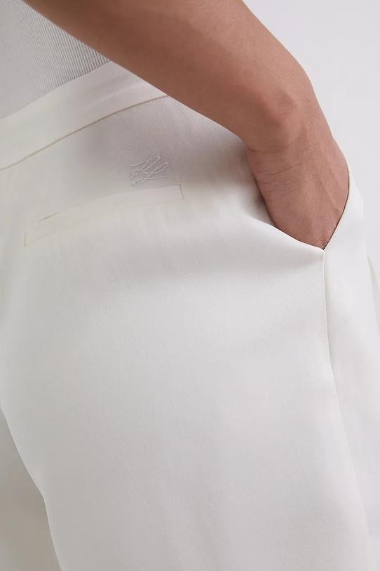Шорты из коллекции Karl Lagerfeld из гладкой ткани. Модель выполнена из дышащего материала с высоким содержанием вискозы. - Шорты свободные на бедрах. - Модель с высокой талией, застежкой на молнию, пуговицы и крючок. - Материал с декоративными складками. - Прямая нога полной длины. - Два боковых накладных кармана. - Имитация карманов на ягодицах.
