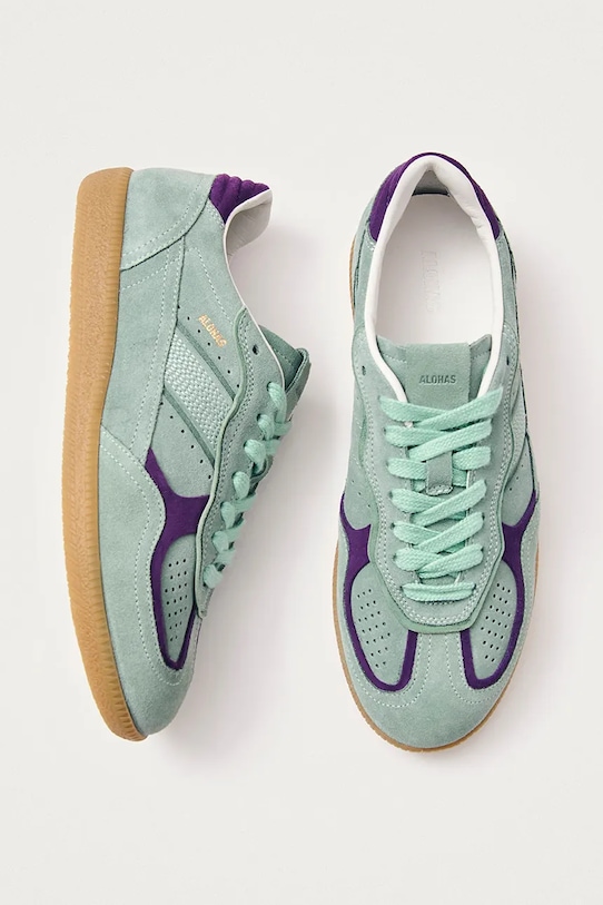 Кроссовки из коллекции Alohas. Изготовлены из замши и оснащены гибкой резиновой подошвой, которая прочна и устойчива к повреждениям. - Круглый, жёсткий носок. - Классическая шнуровка позволяет индивидуально подогнать обувь по ноге. - Резиновая подошва прочная и устойчивая к повреждениям. - Усиленный задник с мягким наполнителем защищает пятку от истирания. - Кожаная стелька комфортна для стопы и предотвращает натирание, потертости и появление неприятного запаха. — Бренд Alohas руководствуется принципами устойчивого потребления и производства. Он стремится сократить отходы и выбросы углерода.