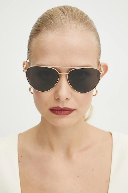 Солнцезащитные очки из коллекции Jimmy Choo. Они оснащены гладкими линзами и металлической оправой. Они также имеют защиту от ультрафиолета UV 400. - Форма оправы: авиатор. - Фильтр UV 400 обеспечивает максимальную защиту от солнечного излучения. - Категория 3 (пропускает 8–18% света) — самая распространённая и универсальная категория затемняющих фильтров. Очки категории 3 идеально подходят для повседневного использования в солнечные дни и для отдыха в жарких странах. - В комплект входит чехол для переноски. - В комплект входит футляр для очков. - Ширина рамы: 140 мм. - Ширина линзы: 60 мм.