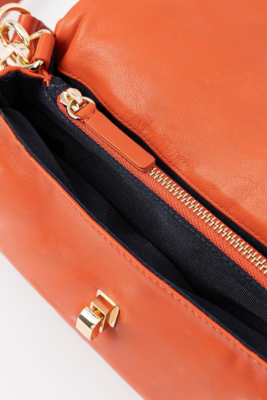 Небольшая сумочка из коллекции Tommy Hilfiger. Модель на молнии, выполнена из натуральной кожи. - Поворотная застежка. - Модель на подкладке. - Имеет три отделения, одно из которых застегивается на молнию. - Внутренних карманов нет. - Сумка для ношения в руке или на плече. - Имеет ручку и съемный регулируемый ремень. - Не подходит для формата А4. - Входящий в комплект тканевый чехол защищает изделие от пыли. - Минимальная длина ремешка: 93 см. - Максимальная длина ремня: 102 см. - Длина ручки: 55 см. - Глубина: 8 см. - Высота: 17 см. - Ширина у основания: 25 см.