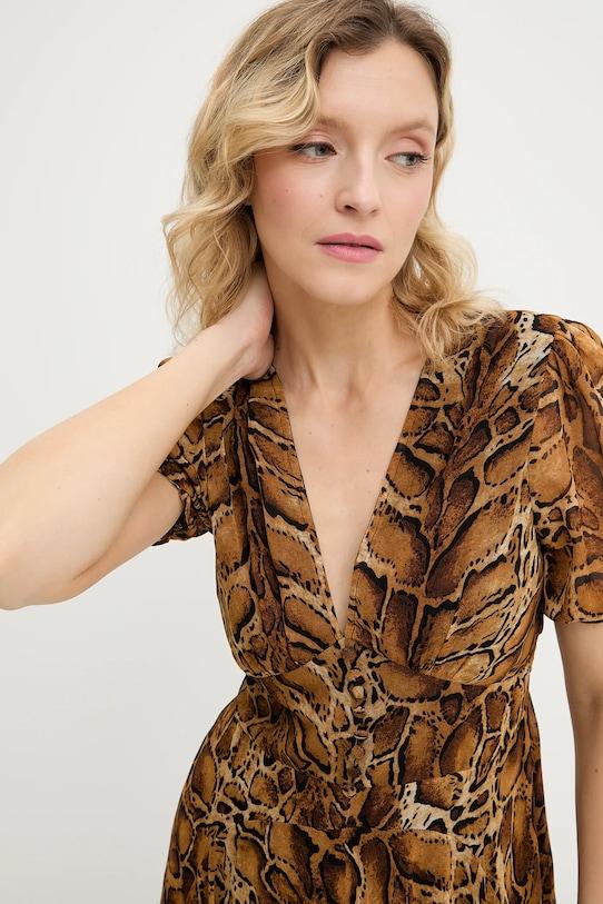 Это платье из коллекции Answear.LAB выполнено из ткани с рисунком. Полиэстер обеспечивает повышенную устойчивость к сминанию. - Расклешенный крой. - Дополнительный слой материала в виде подкладки. - Декоративный, заостренный вырез. - Короткие рукава с удобными эластичными манжетами. - Модель с рукавами-буфами. - Эластичная вставка обеспечивает индивидуальную посадку. - Имитация застежки на пуговицы. - Привлекающие внимание разрезы. - Тонкая, неэластичная ткань. - Длина: 135 см. - Ширина под мышками: 45 см. - Ширина талии: 32 см. - Размеры указаны для размера: S.