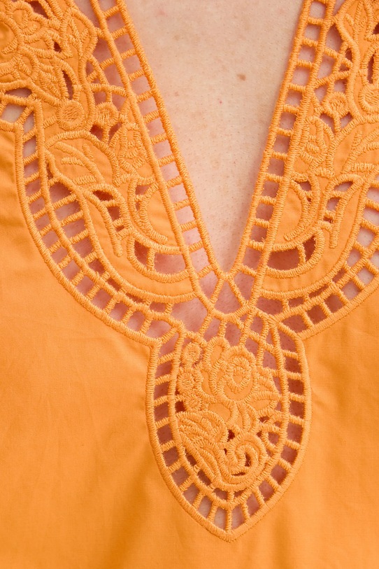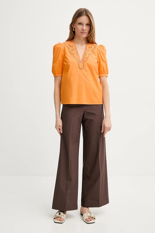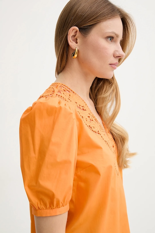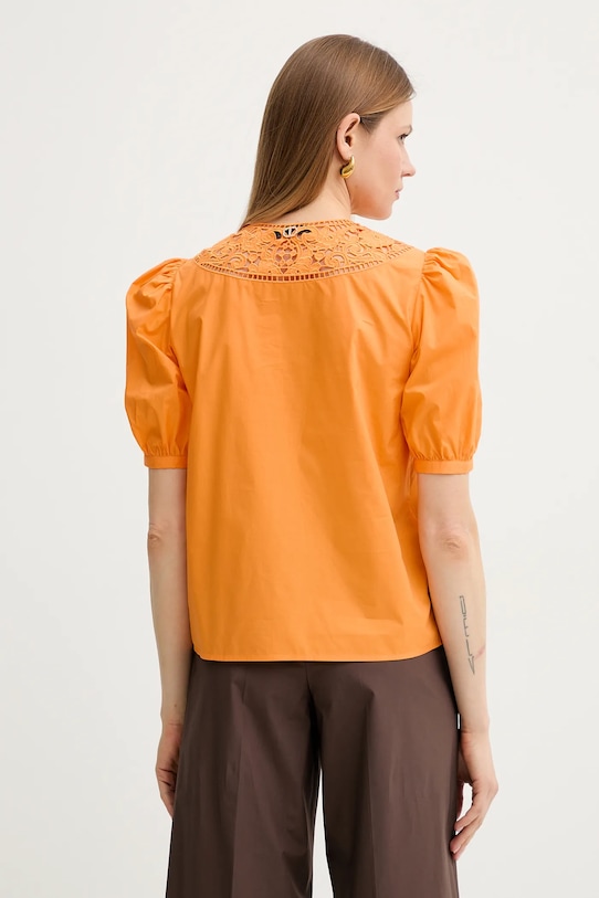 Эта блузка из коллекции Twinset выполнена из тонкой, неэластичной ткани. Модель выполнена из дышащего хлопкового материала. - Простой дизайн, не стесняющий движений. - Короткие, пышные рукава. - Декоративный, заостренный вырез. - Модель с декоративной вышивкой. - Длина: 57 см. - Ширина под мышками: 48 см. - Размеры указаны для размера: 36.