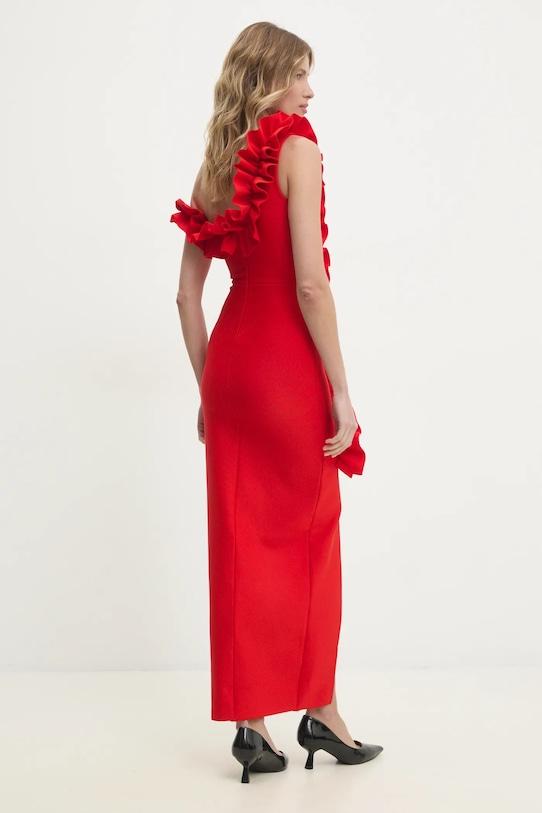 Это элегантное платье из коллекции Answear.LAB выполнено из плотного, высокоэластичного трикотажа. Содержание полиэстера делает ткань менее мнущейся. - Приталенный крой, подчеркивающий силуэт. - В зависимости от расположения рукавов его можно носить с испанским или заостренным вырезом. - Модель с декоративными оборками. - Верхний край покрыт силиконом, что предотвращает скольжение платья. - Застежка на молнию и крючок сзади. - Впечатляющий крой. - Длина: 130 см. - Ширина под мышками: 37 см. - Ширина талии: 30 см. - Ширина бедер: 41 см. - Размеры указаны для размера: S.