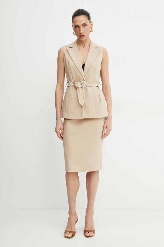 Этот жилет из коллекции Morgan выполнен из гладкой ткани. Содержание полиэстера делает материал менее мнущимся. - Эта модель частично изготовлена из переработанного полиэстера. - Приталенный крой, подчеркивающий силуэт. - Дополнительный слой материала в виде подкладки. - Классические лацканы. - Удобная застежка на кнопки позволяет легко надевать и снимать. - Текстильный ремешок в комплекте. - Два боковых накладных кармана. - Декоративная складка на спинке. - Тонкая, слегка эластичная ткань. - Длина: 72 см. - Ширина под мышками: 44 см. - Размеры указаны для размера: 36.