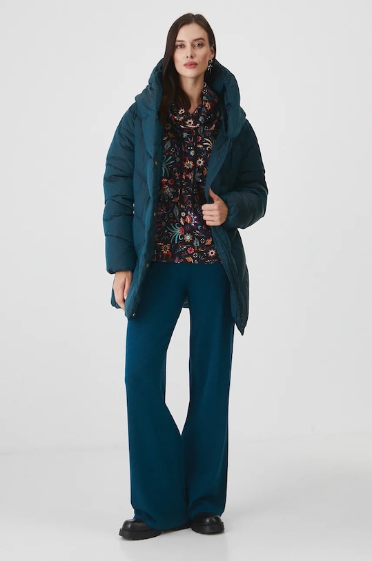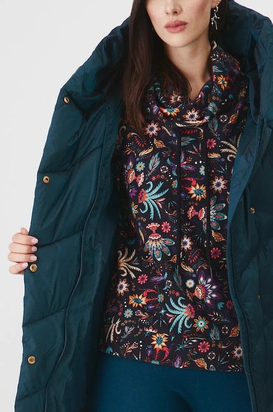 Куртка из коллекции «Медицина». Утеплённая модель из стёганого материала. - Обычная посадка. - В этой модели используется наполнитель DuPont Sorona — отличная альтернатива натуральному пуху. Этот наполнитель обеспечивает отличную теплоизоляцию и сохраняет тепло тела, оставаясь при этом лёгким и прочным. - Модель с капюшоном. - Застежка-молния и кнопки. - Два прорезных боковых кармана на молнии. - Утепленная модель с подкладкой. - Стеганая модель. - Длина рукава: 66 см. - Длина: 81 см. - Ширина под мышками: 59 см. - Ширина плеч: 45 см. - Размеры указаны для размера: S.