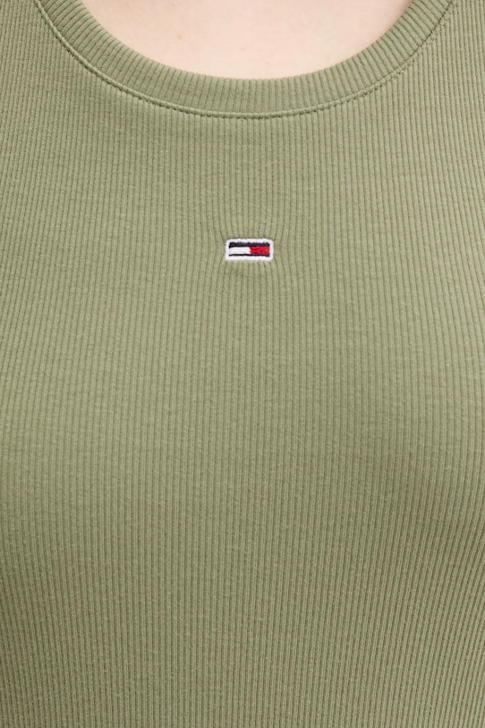 Платье из коллекции Tommy Jeans из тонкой, очень эластичной ткани. Модель частично построена из материалов, полученных в результате регенеративного сельского хозяйства, что означает, что фермеры работают в гармонии с природными ритмами. Такой подход к земледелию обеспечивает более длительный отдых и восстановление растений, что приводит к улучшению питания сельскохозяйственных животных и оздоровлению почвы. - Приталенный крой, подчеркивающий силуэт. - Круглый ребристый вырез. - Нерегулируемые, несъемные лямки. - Длина: 88 см. - Ширина под мышками: 34 см. - Размеры указаны для размера: S.
