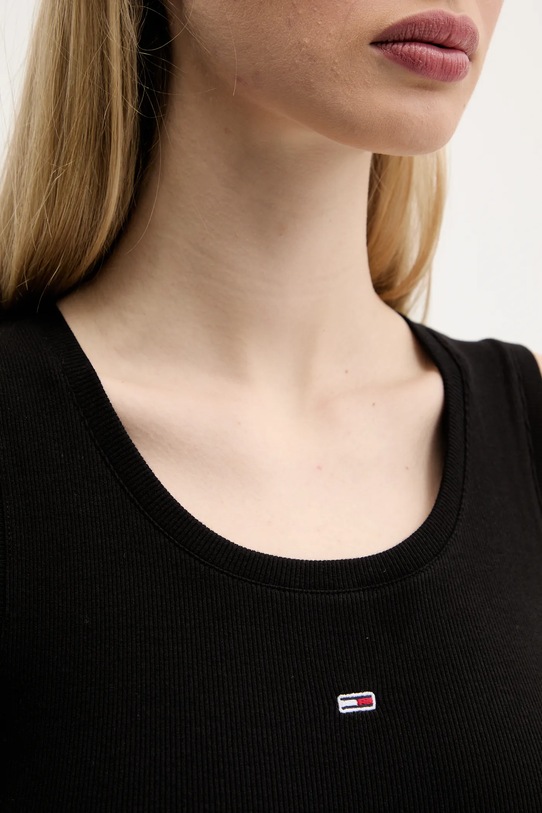 Платье из коллекции Tommy Jeans из тонкой, очень эластичной ткани. Модель частично построена из материалов, полученных в результате регенеративного сельского хозяйства, что означает, что фермеры работают в гармонии с природными ритмами. Такой подход к земледелию обеспечивает более длительный отдых и восстановление растений, что приводит к улучшению питания сельскохозяйственных животных и оздоровлению почвы. - Приталенный крой, подчеркивающий силуэт. - Круглый ребристый вырез. - Нерегулируемые, несъемные лямки. - Длина: 88 см. - Ширина под мышками: 34 см. - Размеры указаны для размера: S.