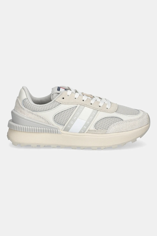 Эти кроссовки из коллекции Tommy Jeans изготовлены из комбинации натуральной кожи, замши и текстиля. Рифленая подошва обеспечивает отличное сцепление. - Круглый, слегка утолщенный носок. - Жесткий задник стабилизирует пятку и удерживает ногу в обуви, не давая ей выскальзывать во время движения. - Плоские шнурки устраняют давление на подъем стопы, обеспечивая хорошую посадку и комфорт. - Текстильная внутренняя часть комфортна для ног и облегчает содержание обуви в чистоте. - Резиновая подошва прочная и устойчивая к повреждениям. - Длина вставки: 23,5 см. - Размеры указаны для размера: 37.