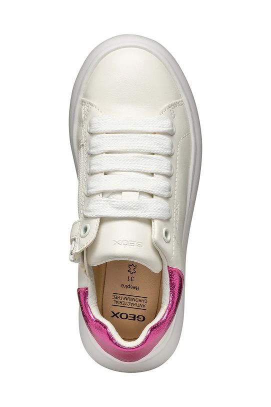 Детские кеды из коллекции Geox. Изготовлены из экокожи. - Круглый, жёсткий носок. - Резиновая подошва. - Усиленный задник с мягким наполнителем защищает пятку от истирания. - Кожаная съемная стелька изготовлена без использования хрома. - Классическая шнуровка позволяет индивидуально подогнать обувь по ноге. - Декоративные детали. - Уютный салон. - Geox Respira System: в них реализована технология Geox Respira, которая благодаря трехслойной подошве с дышащей системой перфорации улучшает вентиляцию, тем самым заботясь о здоровье ваших ног и обеспечивая комфорт при использовании обуви.