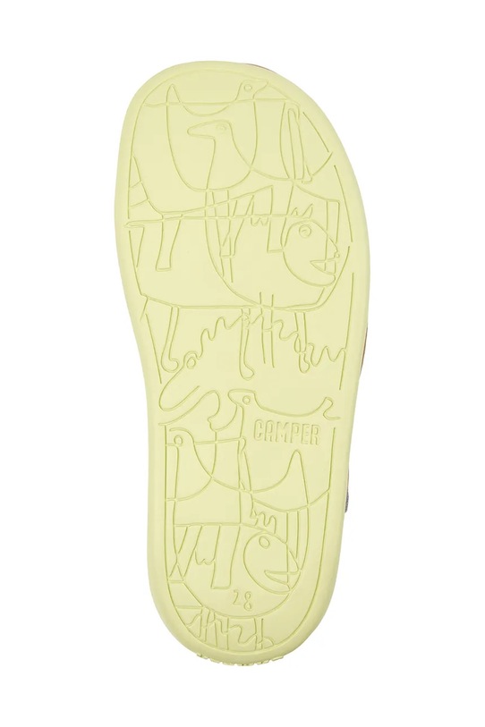 Детские сандалии из коллекции Camper из натуральной кожи. Лёгкие и удобные, идеально подходят для повседневной носки. - Слегка жесткий, круглый носок, чтобы пальцы ног могли свободно двигаться в обуви, не испытывая слишком большого давления или люфта. - Застежка-липучка позволяет легко надевать и снимать обувь. - Кожаная стелька комфортна для стопы и предотвращает натирание, потертости и появление неприятного запаха. - Резиновая подошва прочная и устойчивая к повреждениям. - Обувь ниже щиколотки не ограничивает движения стопы. - Длина вставки: 15,5 см. - Размеры указаны для размера: 25.