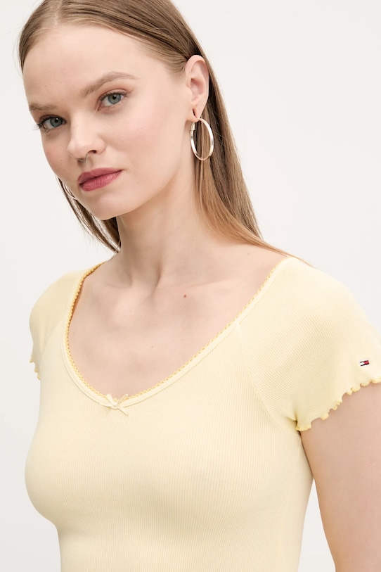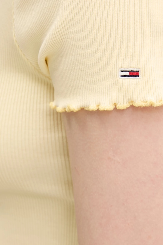 Эта футболка из коллекции Tommy Jeans выполнена из тонкой, эластичной ткани. Эта модель выполнена из исключительно комфортного и дышащего материала, идеально подходящего для теплого времени года. Модель частично построена из материалов, полученных в результате регенеративного сельского хозяйства, что означает, что фермеры работают в гармонии с природными ритмами. Такой подход к земледелию обеспечивает более длительный отдых и восстановление растений, что приводит к улучшению питания сельскохозяйственных животных и оздоровлению почвы. - Приталенный крой, подчеркивающий силуэт. - Острый ребристый вырез.
