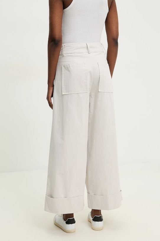 Эти брюки Answear.LAB изготовлены из тонкой, неэластичной ткани. Они исключительно удобные и дышащие, идеально подходят для теплого времени года. - Брюки свободные в области бедер и ягодиц. - Прямая нога полной длины. - Модель с высокой талией, застежкой на молнию и пуговицы. - Декоративные закладки. - Два боковых накладных кармана. - Два накладных кармана на ягодицах. - Ширина талии: 34 см. - Ширина бедер: 59 см. - Высота талии: 33,5 см. - Ширина штанины внизу: 35,5 см. - Ширина штанины: 39 см. - Длина внешнего шва: 100 см. - Размеры указаны для размера: S.