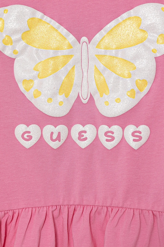 Этот детский лонгслив из коллекции Guess выполнен из тонкого, эластичного трикотажа. Эта модель выполнена из исключительно комфортного и дышащего материала, идеально подходящего для теплого времени года. - Органический хлопок выращивается без использования вредных химикатов, химических пестицидов и искусственных удобрений. - Простой дизайн, не стесняющий движений. - Длинный рукав. - Классический круглый вырез. - Модель с принтом. - Модель с декоративной оборкой. - Длина рукава: 43 см. - Длина: 43 см. - Ширина под мышками: 32 см. - Размеры указаны для роста: 118-122 см.