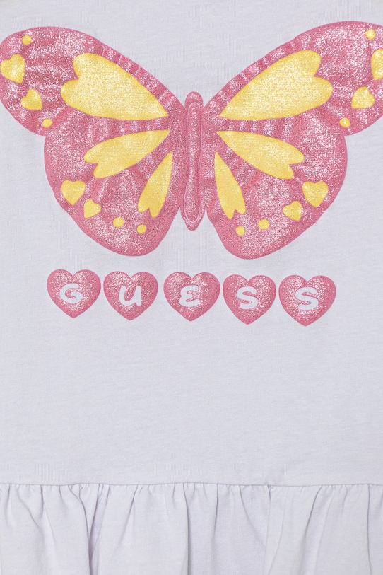 Этот детский лонгслив из коллекции Guess выполнен из тонкого, эластичного трикотажа. Эта модель выполнена из исключительно комфортного и дышащего материала, идеально подходящего для теплого времени года. - Органический хлопок выращивается без использования вредных химикатов, химических пестицидов и искусственных удобрений. - Простой дизайн, не стесняющий движений. - Длинный рукав. - Классический круглый вырез. - Модель с принтом. - Модель с декоративной оборкой. - Длина рукава: 43 см. - Длина: 43 см. - Ширина под мышками: 32 см. - Размеры указаны для роста: 118-122 см.