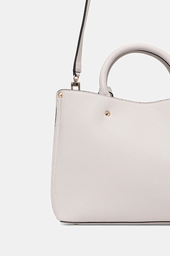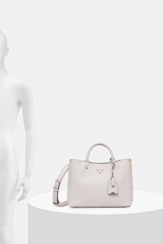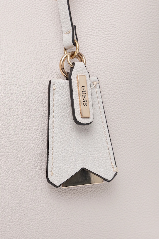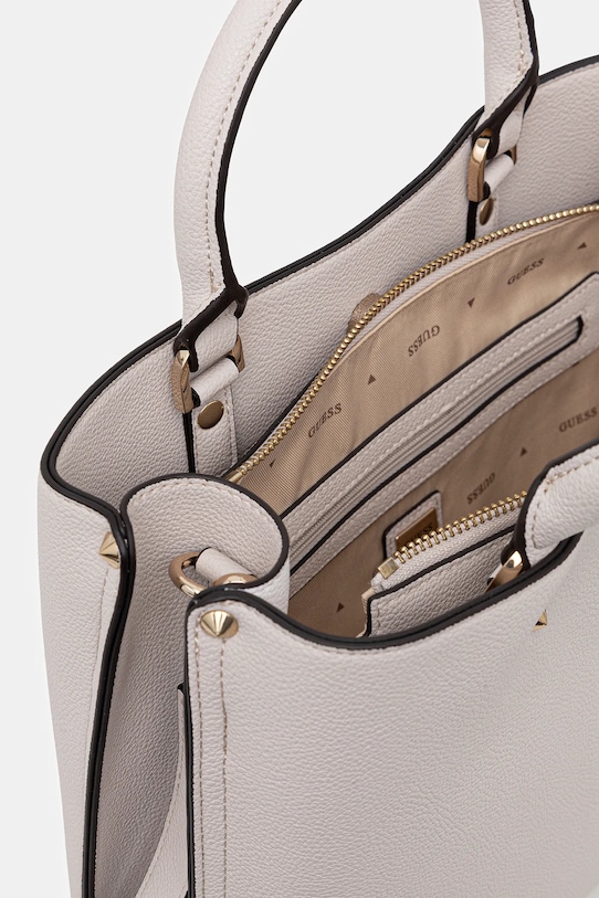 Большая сумка из коллекции Guess. Модель на молнии, выполнена из экокожи. - Не подходит для формата А4. - Входящий в комплект тканевый чехол защищает изделие от пыли. - Имеет три отделения: одно на молнии, два на магнитной застежке. - Короткие ручки. - Съемный регулируемый ремешок. - Модель оснащена металлическими ножками, защищающими дно сумки. - Три внутренних кармана: один на молнии, два накладных. - Глубина: 10,3 см. - Высота: 24 см. - Ширина у основания: 30 см. - Длина ручки: 32 см. - Максимальная длина ремня: 80 см. - Минимальная длина ремешка: 98 см.