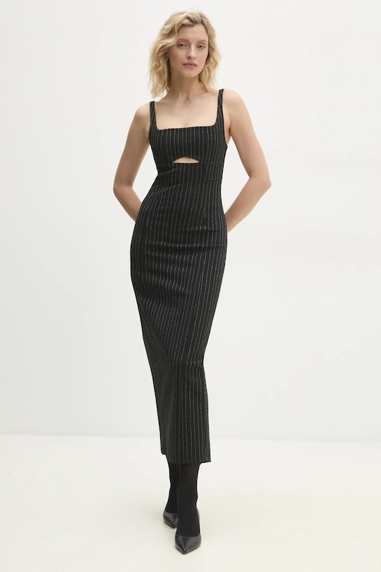 Это платье из коллекции Answear.LAB выполнено из трикотажного полотна с рисунком, слегка эластичного. Содержание полиэстера делает ткань менее мнущейся. - Приталенный крой, подчеркивающий силуэт. - Модель без подкладки. - Алмазный вырез. - Нерегулируемые лямки не соскальзывают с плеч, обеспечивая комфорт во время занятий. - Застежка-молния сзади. - Впечатляющий крой. - Декоративный вырез спереди. - Тонкий, слегка эластичный трикотаж. - Длина: 132 см. - Ширина под мышками: 36 см. - Ширина талии: 32 см. - Ширина бедер: 42 см. - Размеры указаны для размера: S.