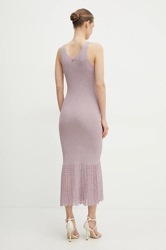 Это платье из коллекции Twinset выполнено из тонкого, высокоэластичного трикотажа. Эффектный, мерцающий материал с металлизированной нитью. - Приталенный крой, подчеркивающий силуэт. - Острый вырез с декоративной шнуровкой. - Материал с металлической нитью. - Модель выполнена из трикотажного полотна в рубчик. - Нерегулируемые, несъемные лямки.