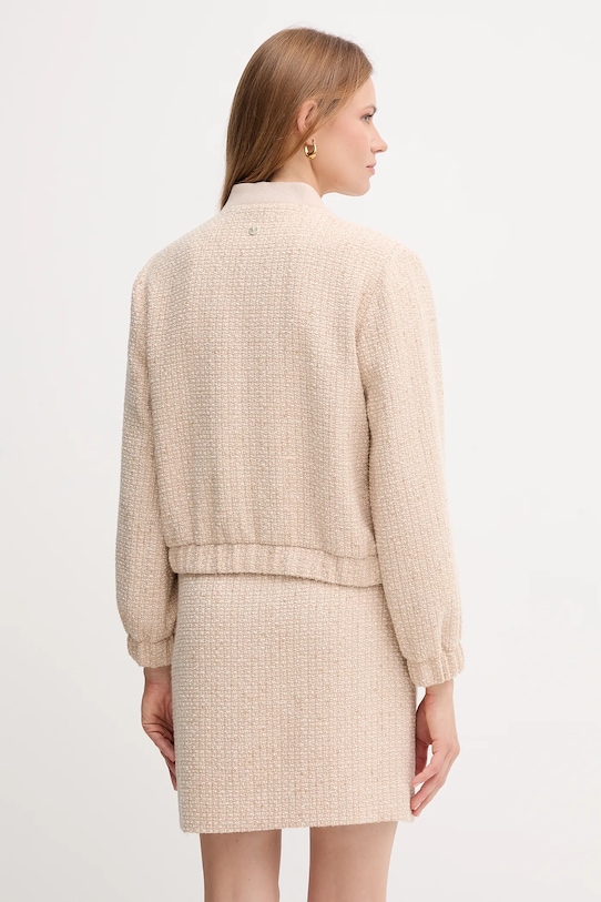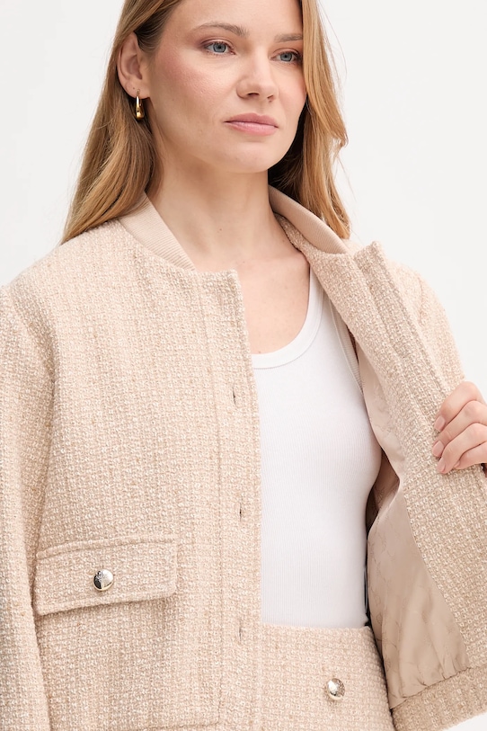 Куртка-бомбер из коллекции Joop!. Эта модель без подкладки выполнена из ткани с рисунком. Высокие терморегулирующие свойства шерсти позволяют согреться в холод и охладиться в жару. - Простой дизайн, не стесняющий движений. - Рукава и низ изделия отделаны удобными эластичными манжетами. - Удобная застежка на кнопки позволяет легко надевать и снимать. - Внешние карманы на молнии. - Модель на подкладке. - Плетение с декоративной металлической нитью. - Длина рукава: 56 см. - Длина: 53 см. - Ширина под мышками: 47 см. - Ширина плеч: 40 см. - Размеры указаны для размера: 36.