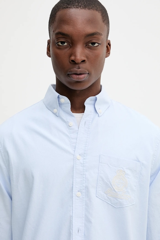 Эта рубашка из коллекции Guess Jeans выполнена из тонкой, неэластичной ткани. Модель выполнена из исключительно комфортного хлопкового материала. - Классический стиль. - Мягкий воротник на пуговицах. - Удлиненный задний край обеспечивает защиту во время движения. - Манжеты на пуговицах. - Удобная застежка на кнопки позволяет легко надевать и снимать. - Нагрудные карманы. - Модель с декоративной вышивкой. - Длина рукава: 68 см. - Длина спереди: 72 см. - Длина спинки: 77 см. - Ширина под мышками: 54 см. - Ширина плеч: 45 см. - Размеры указаны для размера: M.
