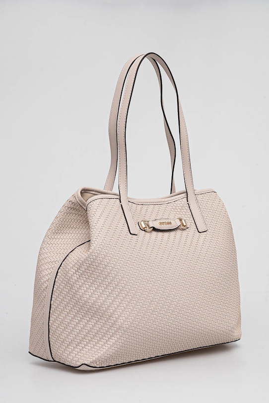 Большая сумка из коллекции Guess. Модель на молнии, выполнена из экокожи. - Магнитная застежка. - Модель на подкладке. - Внутренних карманов нет. - Модель «два в одном» — имеет съемное отделение, которое можно носить как отдельную модель. - Съемное отделение на подкладке с застежкой-молнией. - Модель оснащена металлическими ножками, защищающими дно сумки. - Длинные ручки для удобной переноски в руке или на плече. - Вмещает формат А4. - Входящий в комплект тканевый чехол защищает изделие от пыли. - Глубина: 18 см. - Высота: 30,5 см. - Ширина у основания: 39 см.