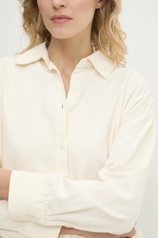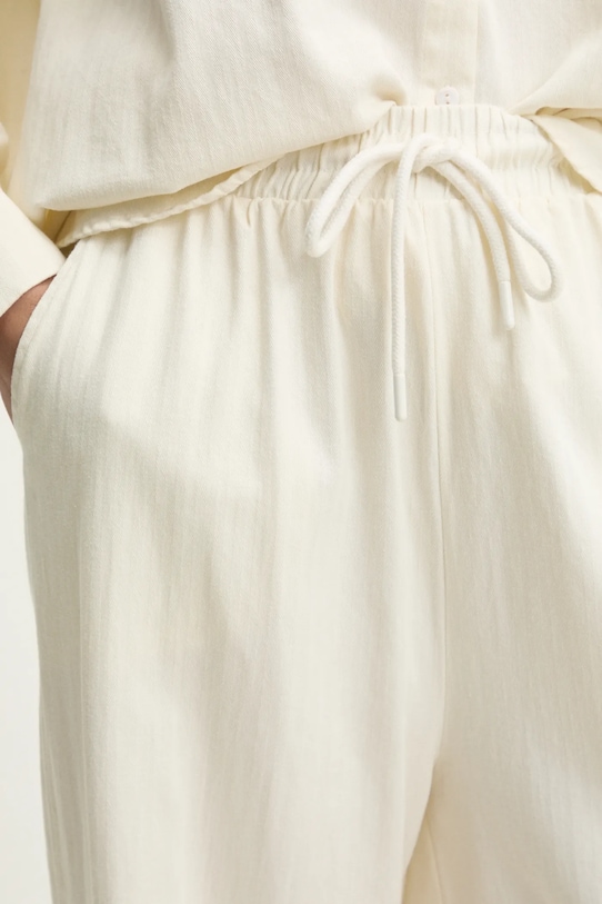 Комплект из коллекции Answear.LAB, выполненный из гладкой ткани. Доступен эксклюзивно на Answear.com. - Свободный крой, обеспечивающий полную свободу движений. - Застежка на пуговицы. - Рукава с манжетами на пуговицах. - Эластичный пояс со шнурками. - Два накладных кармана спереди. - Длина рукава (от воротника): 68 см. - Длина: 70 см. - Ширина под мышками: 63 см. - Ширина талии: 33 см. - Ширина бедер: 48 см. - Ширина штанины внизу: 30 см. - Ширина штанины: 32 см. - Высота талии: 37 см. - Длина внешнего шва: 110 см. - Размеры указаны для размера: S.