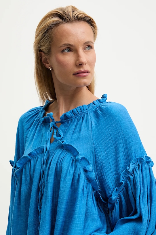 Эта блузка из коллекции Answear.LAB выполнена из гладкой ткани. Модель выполнена из дышащего вискозного материала. - Свободный крой, обеспечивающий полную свободу движений. - Декоративная окантовка по вырезу горловины. - Рукава реглан благодаря своей конструкции обеспечивают большую свободу движений. - Рукава отделаны удобными эластичными манжетами. - Модель с декоративными оборками. - Модель с декоративными завязками. - Тонкая, неэластичная ткань. - Длина рукава (от горловины): 75 см. - Длина: 58 см. - Ширина под мышками: 62 см. - Размеры указаны для размера: S.