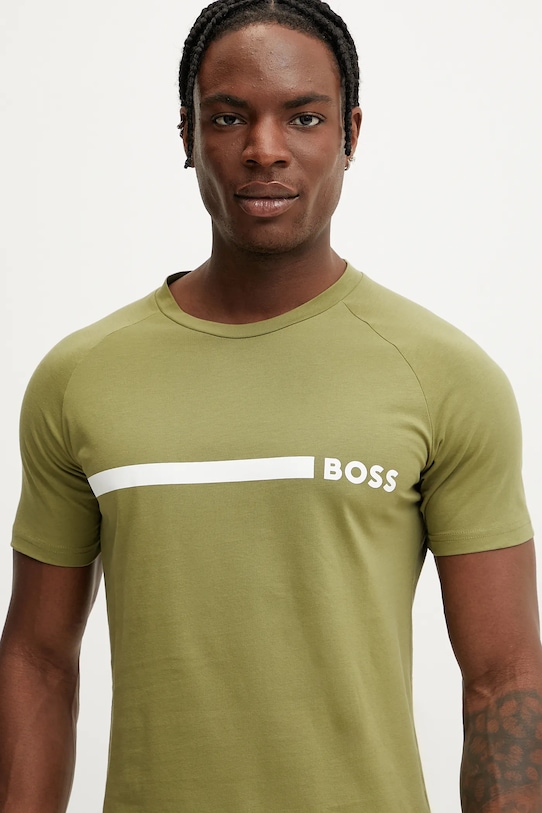 Эта футболка BOSS выполнена из тонкой эластичной ткани. Эта модель выполнена из исключительно комфортного хлопкового материала. - Изделия линейки BETTER BOSS не менее чем на 60% изготовлены из материалов, полученных более экологичным способом. - Приталенный крой. - Модель с защитой от ультрафиолета. - Обычная посадка. - Классический круглый вырез. - Рукав реглан. - Рукава реглан благодаря своей конструкции обеспечивают большую свободу движений. - Короткий рукав. - Модель с принтом. - Длина: 73 см. - Ширина под мышками: 51 см. - Размеры указаны для размера: M.