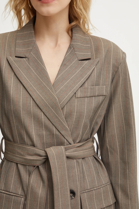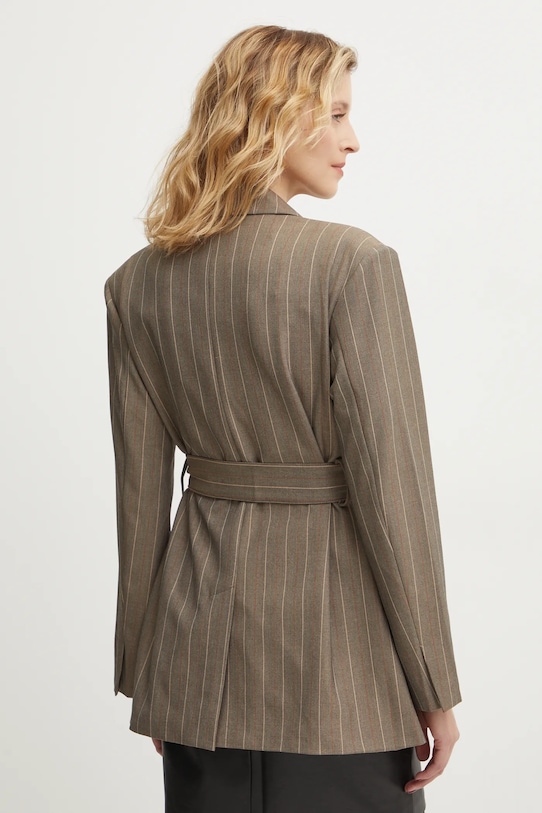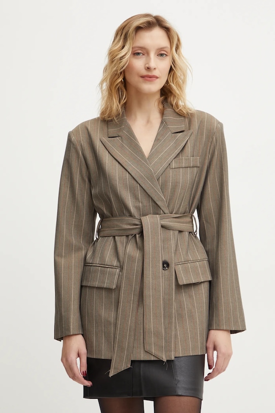 Этот блейзер из коллекции Answear.LAB выполнен из ткани с рисунком. Содержание полиэстера делает материал менее мнущимся. - Простой дизайн, не стесняющий движений. - Удобная застежка на кнопки позволяет легко надевать и снимать. - Классические лацканы. - В плечах вшиты подкладки. - Модель с карманами, декорированными клапанами. - Имитация нагрудных карманов. - Текстильный ремешок в комплекте. - Дополнительный слой материала в виде подкладки. - Длина рукава: 57 см. - Длина: 74 см. - Ширина под мышками: 53 см. - Ширина плеч: 44 см. - Указаны размеры: XS/S.