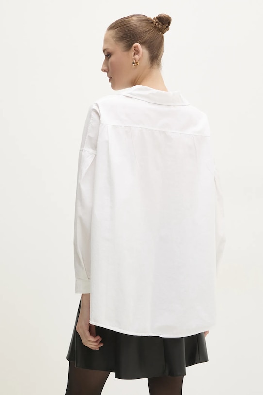Эта рубашка Answear.LAB выполнена из тонкой, слегка эластичной ткани. Эта модель выполнена из исключительно комфортного материала с высоким содержанием хлопка. - Рубашка свободного кроя отличается свободным кроем, обеспечивает комфорт и не стесняет движений. - Длинный рукав. - Крой рукава со спущенной линией плеча не ограничивает подвижность. - Модель с воротником. - Удобная застежка на кнопки позволяет легко надевать и снимать. - Накладной карман на груди. - Длина рукава (от воротника): 71,5 см. - Длина: 71,5 см. - Ширина под мышками: 82 см. - Указаны размеры: S/M.
