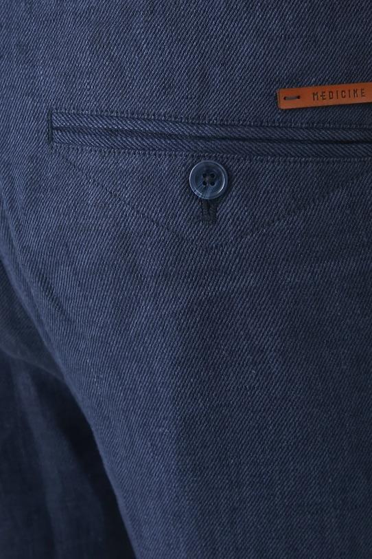 Брюки из коллекции «Медицина». Изготовлены из льняного материала. - Обычная посадка. - Брюки имеют косые карманы - они идеально вписываются в стиль smart casual. - Обхват талии обычный. - Эластичная резинка сзади. - Застежка на пуговицы и молнию. - Накладные карманы. - Штанина отутюживается в складку. - Меланжевая ткань. - Ширина талии (до растягивания): 42 см. - Ширина талии (после растяжения): 46 см. - Ширина бедер: 54,5 см. - Высота талии: 26,2 см. - Ширина штанины внизу: 19 см. - Длина по внутреннему шву: 80 см. - Размеры указаны для размера: M.