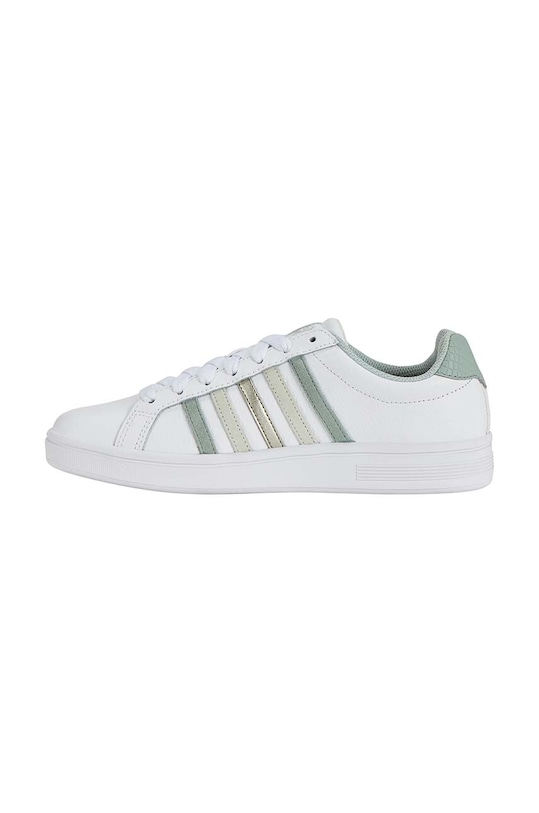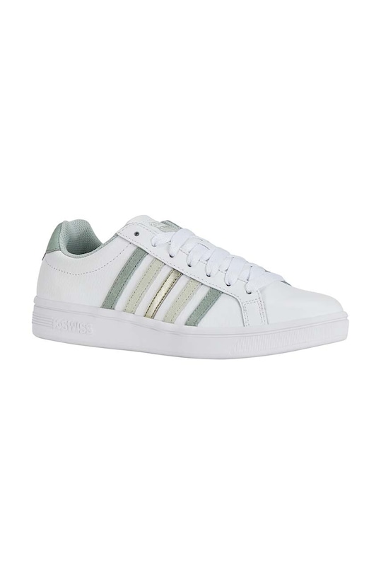 Кроссовки из коллекции K-Swiss. Изготовленные из комбинации натуральной кожи и синтетического материала, эти лёгкие и удобные кроссовки идеально подойдут для повседневной носки. - Круглый, жёсткий носок. - Текстильная внутренняя часть комфортна для ног и облегчает содержание обуви в чистоте. - Съемная стелька из пеноматериала амортизирует стопу и обеспечивает комфорт. - Усиленный задник обеспечивает отличную поддержку лодыжки и пятки. - Плоские шнурки устраняют давление на подъем стопы, обеспечивая хорошую посадку и комфорт. - Резиновая подошва прочная и устойчивая к повреждениям.