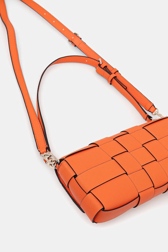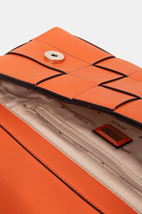 Небольшая сумочка из коллекции Guess. Модель на молнии, выполнена из экокожи. - Клапан застегивается на магнит. - Не подходит для формата А4. - Имеет регулируемую ручку и съемный регулируемый ремень. - Входящий в комплект тканевый чехол защищает изделие от пыли. - Модель на подкладке. - Внутренний карман на молнии. - Количество слотов для карт: 3. - Минимальная длина ремешка: 111 см. - Максимальная длина ремня: 129 см. - Минимальная длина ручки: 66 см. - Максимальная длина ручки: 60 см. - Глубина: 5 см. - Высота: 14 см. - Ширина у основания: 27 см.