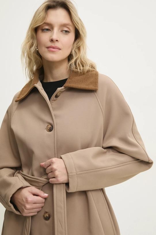 Это пальто из коллекции Answear.LAB. Модель без подкладки выполнена из гладкой ткани. Содержание полиэстера делает материал менее мнущимся. - Свободный крой, обеспечивающий полную свободу движений. - Удобная застежка на кнопки позволяет легко надевать и снимать. - Рукава реглан благодаря своей конструкции обеспечивают большую свободу движений. - Модель с воротником. - Два боковых накладных кармана. - Текстильный ремешок в комплекте. - Подкладка из флиса. - Длина рукава (от воротника): 77 см. - Длина: 111 см. - Ширина под мышками: 64 см. - Указаны размеры: S/M.
