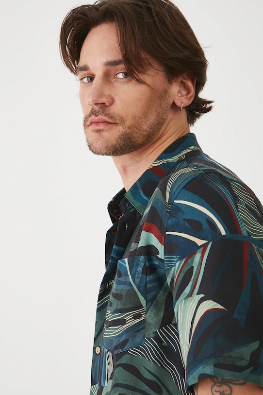 Эта рубашка из коллекции Medicine изготовлена из смесовой льняной ткани и имеет классический, слегка жесткий воротник. - Материал с добавлением льна обеспечивает комфорт и воздухопроницаемость. - Рубашка прямого кроя мягко облегает фигуру, но не подчеркивает ее, обеспечивая свободу движений. - Короткий рукав. - Слегка усиленный классический воротник Kent. - Застежка на пуговицы. - Узорчатая ткань. - Узор с растительным мотивом. - Окружность воротника: 43,5 см. - Длина: 77,6 см. - Ширина груди: 58,5 см. - Ширина плеч: 48,5 см. - Размеры указаны для размера: M.