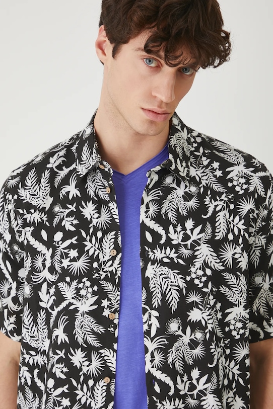 Эта рубашка из коллекции Medicine изготовлена из смесовой льняной ткани и имеет классический, слегка жесткий воротник. - Материал с добавлением льна обеспечивает комфорт и воздухопроницаемость. - Рубашка прямого кроя мягко облегает фигуру, но не подчеркивает ее, обеспечивая свободу движений. - Короткий рукав. - Слегка усиленный классический воротник Kent. - Застежка на пуговицы. - Узорчатая ткань. - Узор с растительным мотивом. - Окружность воротника: 44,5 см. - Длина: 77,6 см. - Ширина груди: 58,5 см. - Ширина плеч: 47,5 см. - Размеры указаны для размера: L.