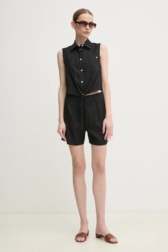 Шорты из коллекции Gaudi из гладкой ткани. Модель выполнена из лёгкого, дышащего материала с высоким содержанием льна. - Простой дизайн, не стесняющий движений. - Модель с высокой талией и застежкой на пуговицы и молнию. - Прямая нога полной длины. - Модель со складками. - Два боковых накладных кармана. - Тонкая, слегка эластичная ткань.