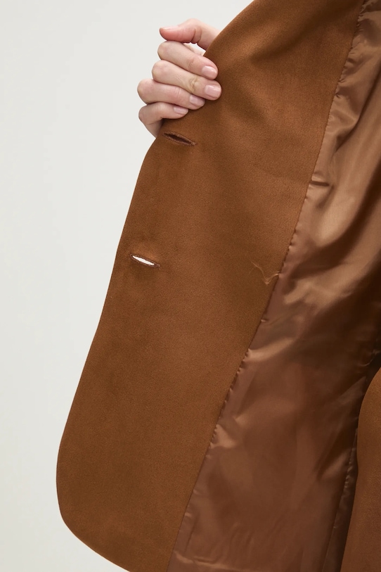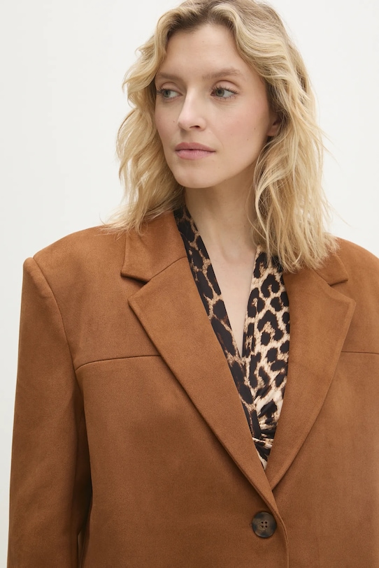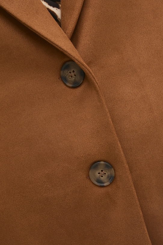 Эта куртка Answear.LAB изготовлена из искусственной замши. Содержание полиэстера делает материал менее мнущимся. - Свободный крой, обеспечивающий полную свободу движений. - Крой рукава со спущенной линией плеча не ограничивает подвижность. - В плечах вшиты подкладки. - Удобная застежка на кнопки позволяет легко надевать и снимать. - Классические лацканы. - Модель с карманами, декорированными клапанами. - Дополнительный слой материала в виде подкладки. - Длина рукава (от воротника): 72,5 см. - Длина: 72 см. - Ширина под мышками: 56 см. - Указаны размеры: S/M.