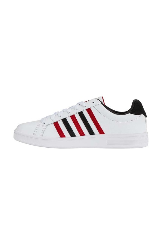Кроссовки из коллекции K-Swiss. Изготовлены из комбинации натуральной кожи и синтетического материала, имеют гибкую резиновую подошву, прочную и устойчивую к повреждениям. - Круглый, жёсткий носок. - Текстильная внутренняя часть комфортна для ног и облегчает содержание обуви в чистоте. - Съемная стелька из пеноматериала амортизирует стопу и обеспечивает комфорт. - Усиленный задник с мягким наполнителем защищает пятку от истирания. - Плоские шнурки устраняют давление на подъем стопы, обеспечивая хорошую посадку и комфорт. - Резиновая подошва прочная и устойчивая к повреждениям.