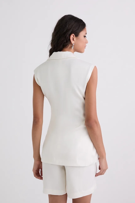 Жилет из коллекции Karl Lagerfeld из гладкой ткани. Модель выполнена из дышащего материала с высоким содержанием вискозы. - Простой дизайн, не стесняющий движений. - Дополнительный слой материала в виде подкладки. - Закругленные лацканы. - Удобная застежка на кнопки позволяет легко надевать и снимать. - Модель с регулируемой шнуровкой.