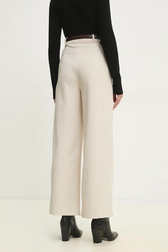 Эти брюки Answear.LAB сшиты из тонкой, слегка эластичной ткани. Благодаря содержанию полиэстера они менее мнутся. - Брюки свободные в области бедер и ягодиц. - Свободная нога. - Модель с высокой талией, застежкой на пуговицы и молнию. - Ремешок из эко-кожи в комплекте. - Два боковых накладных кармана. - Декоративные закладки. - Гладкая ткань. - Ширина талии: 32 см. - Ширина бедер: 52 см. - Высота талии: 33,5 см. - Ширина штанины внизу: 29,5 см. - Ширина штанины: 31,5 см. - Длина внешней части штанины: 106,5 см. - Размеры указаны для размера: S.