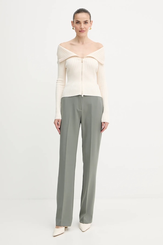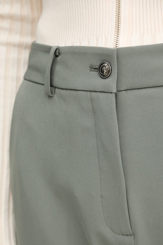 Эти брюки из коллекции Guess изготовлены из тонкой эластичной ткани. Содержание полиэстера делает материал менее мнущимся. - Содержит переработанный пластик. - Простой дизайн, не стесняющий движений. - Модель с высокой талией, застежкой на молнию и пуговицы. - Два боковых накладных кармана. - Имитация карманов на ягодицах. - Штанина отутюживается в складку. - Ширина талии: 36 см. - Ширина бедер: 49 см. - Высота талии: 29 см. - Ширина штанины снизу: 25 см. - Ширина штанины: 28 см. - Длина по внутреннему шву: 83 см. - Размеры указаны для размера: S.