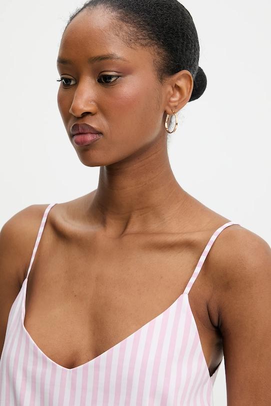 Пижама из коллекции Answear.LAB. Модель выполнена из слегка эластичной ткани, дышащей и с высоким содержанием хлопка. - Простой дизайн, не стесняющий движений. - Декоративный, заостренный вырез. - Нерегулируемые лямки не соскальзывают с плеч, обеспечивая комфорт во время занятий. - Шорты свободные на бедрах. - Высокая талия обеспечивает комфорт во время занятий спортом и позволяет визуально стройнить фигуру. - Эластичный пояс предотвращает скольжение во время движения. - Прямая нога полной длины. - Модель с декоративной оборкой. - Тонкая, слегка эластичная ткань.