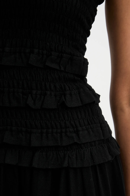 Это платье из коллекции Answear.LAB выполнено из тонкой, неэластичной ткани. Модель выполнена из дышащего материала с высоким содержанием вискозы. - Приталенный верх и расклешенный низ. - Классический круглый вырез. - Эластичная вставка обеспечивает индивидуальную посадку. - Модель с декоративными оборками. - Модель с декоративными оборками. - Впечатляющий крой. - Гладкая ткань. - Нижняя часть платья с дополнительным слоем материала в виде подкладки. - Длина: 127 см. - Ширина под мышками: 25 см. - Ширина талии: 35 см. - Размеры указаны для размера: S.