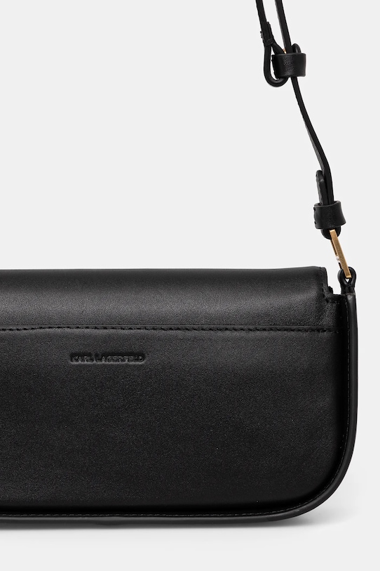 Маленькая сумочка из коллекции Карла Лагерфельда. Модель с застёжкой-крючком, выполнена из натуральной кожи. - Модели линейки Karl Cares изготовлены из материалов, произведенных в ходе устойчивого, экологически чистого процесса производства. - Клапан застегивается на магнит. - Модель без подкладки. - Внутренний карман. - Сумка для ношения в руке или на плече. - Несъемный длинный ремешок с регулировкой. - Не подходит для формата А4. - Входящий в комплект тканевый чехол защищает изделие от пыли. - Глубина: 6 см. - Высота: 11 см. - Ширина у основания: 24 см.