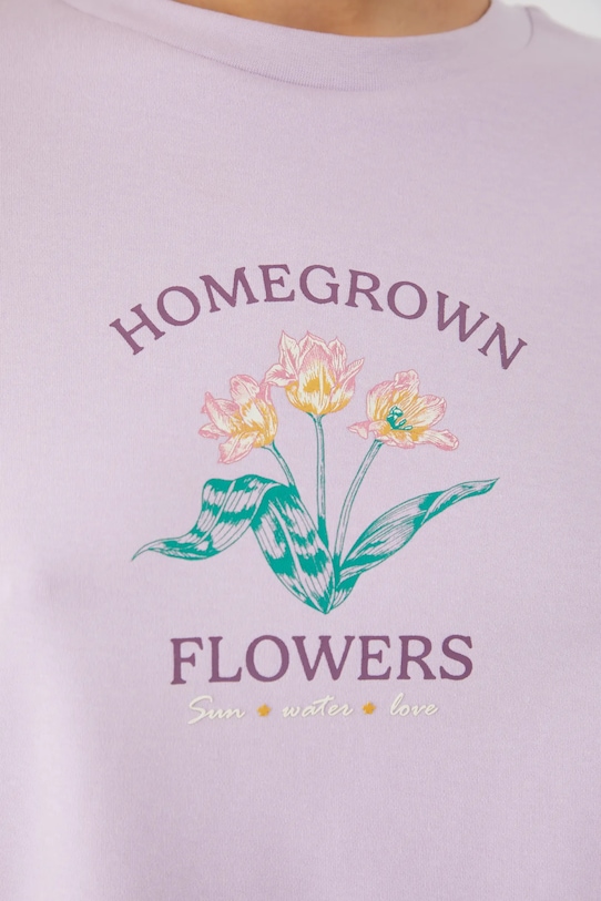 Футболка из коллекции «Медицина». Изготовлена из трикотажного полотна с принтом. - Материал с сертификатом OEKO-TEX Standard 100 гарантирует, что текстильные изделия, на которых он нанесен, не содержат вредных и потенциально опасных для человека и окружающей среды веществ. - Обычная посадка. - Короткий рукав. - Круглый вырез. - Печать на лицевой стороне с надписью: домашние цветы - солнце, вода, любовь. - Печать с растительным мотивом. - Трикотажное полотно интерлок с плотным переплетением. - Длина: 60 см. - Ширина груди: 47 см. - Размеры указаны для размера: S.