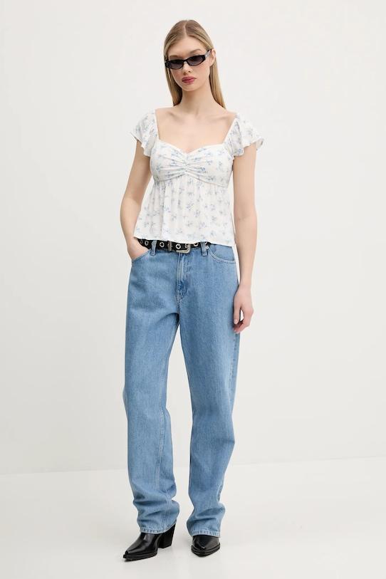 Эта блузка из коллекции Hollister Co. выполнена из тонкой, неэластичной ткани. Модель выполнена из мягкого и приятного на ощупь материала. - Простой дизайн, не стесняющий движений. - Декоративный, заостренный вырез. - Короткий рукав. - Декоративная шнуровка на спине. - Модель с эластичной вставкой. - Съемные подушечки обеспечивают легкую поддержку и дополнительное покрытие в области груди. - Модель с декоративными оборками. - Дополнительный слой материала в виде подкладки спереди. - Длина: 48 см. - Ширина под мышками: 38 см. - Размеры указаны для размера: S.