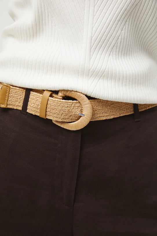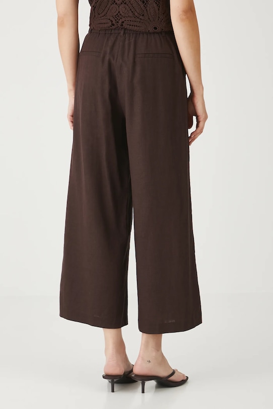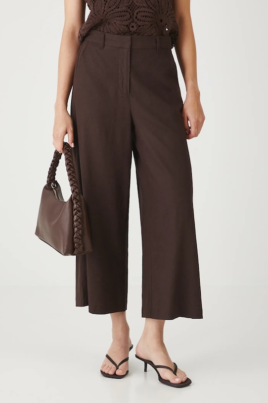 Брюки из коллекции «Медицина». Изготовлены из смеси льна и вискозы. - Льняной материал обеспечивает комфорт и воздухопроницаемость. - Фасон кюлотов. - Модель с высокой талией, застежкой на пуговицы и молнию. - Ремешок в комплекте. - Эластичная резинка сзади. - Накладные карманы. - Широкие штанины. - Гладкая ткань. - Ширина талии (до растягивания): 36,5 см. - Ширина талии (после растяжения): 40 см. - Ширина бедер: 51 см. - Высота талии: 30,5 см. - Ширина штанины внизу: 36 см. - Длина по внутреннему шву: 63 см. - Размеры указаны для размера: S.