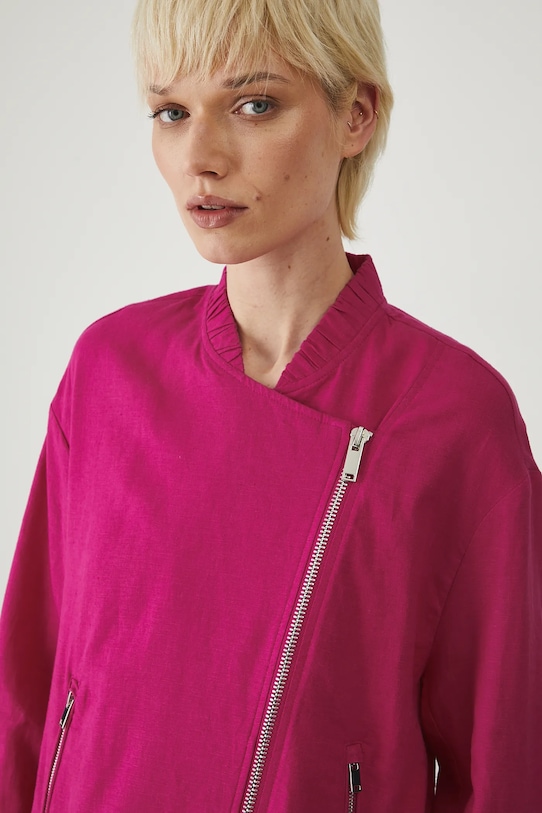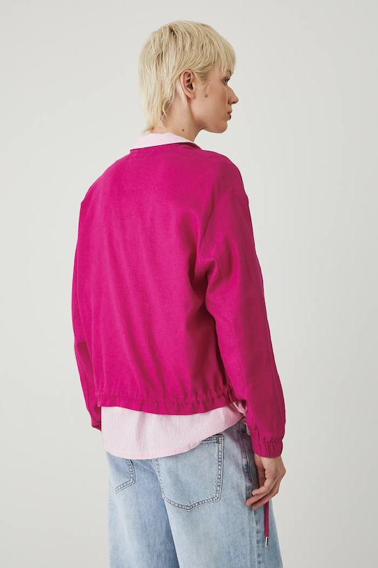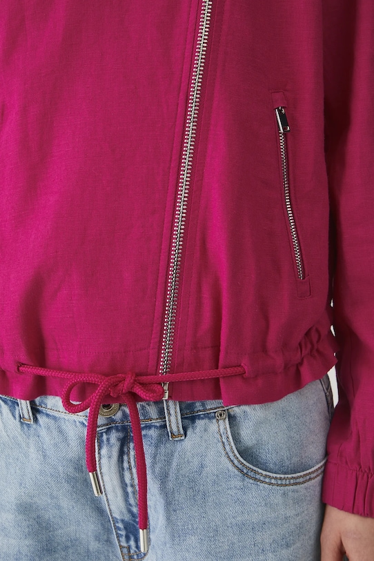 Куртка-бомбер из коллекции Medicine. Эта модель без подкладки выполнена из смеси льна и вискозы. - Льняной материал обеспечивает комфорт и воздухопроницаемость. - Большой размер. - Длинный рукав. - Рукава отделаны ребристыми манжетами. - Воротник-бомбер. - Застежка-молния. - Два прорезных боковых кармана на молнии. - Нижний край отделан завязками, позволяющими индивидуально регулировать размер. - Неутепленная модель без подкладки. - Гладкий материал. - Длина рукава: 56 см. - Длина: 57,5 см. - Ширина груди: 57 см. - Размеры указаны для размера: S.
